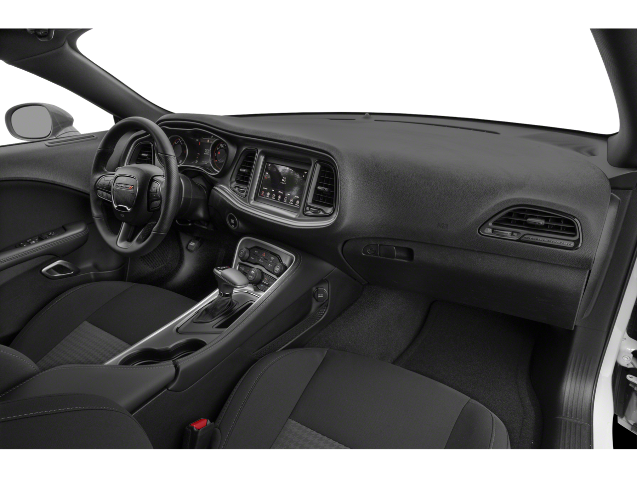 Inside, the Challenger's cabin is appointed with premium materials and thoughtful technology. Enjoy the convenience of keyless entry, the safety of a backup camera, and the entertainment of SiriusXM Satellite Radio. The Houndstooth Cloth Performance Seats provide both comfort and support, while the sport steering wheel and driver-focused controls ensure an engaging driving experience.