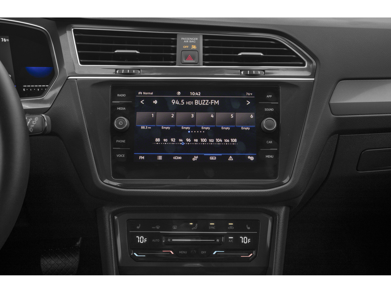 The Tiguan's striking exterior features the iconic Volkswagen design, with a bold front grille, sleek lines, and alluring 18-inch Dark Graphite 10-spoke alloy wheels. Step inside and you'll be greeted by a spacious, well-appointed cabin, complete with heated front comfort seats, a panoramic sunroof, and a premium Fender audio system.