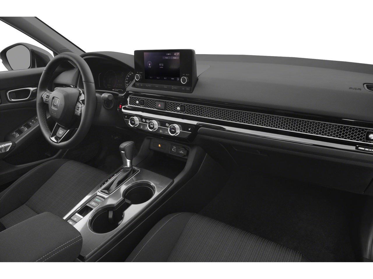 Black w/Leather-Trimmed Seating Surfaces, 17 Alloy Wheels, 4-Wheel Disc Brakes, 8 Speakers, ABS brakes, Adaptive Cruise Control: Adaptive Cruise Control (ACC) with Low-Speed Follow, Air Conditioning, Alloy wheels, AM/FM radio, Apple CarPlay/Android Auto, Auto High-beam Headlights, Automatic temperature control, Blind Spot Information (BSI) System warning, Brake assist, Bumpers: body-color, Delay-off headlights, Driver door bin, Driver vanity mirror, Dual front impact airbags, Dual front side impact airbags, Electronic Stability Control, Emergency communication system: HondaLink, Exterior Parking Camera Rear, Four wheel independent suspension, Front anti-roll bar, Front Bucket Seats, Front Center Armrest, Front dual zone A/C, Front reading lights, Fully automatic headlights, Heated door mirrors, Heated Front Bucket Seats, Heated front seats, Illuminated entry, Knee airbag, Lane departure: Lane Keeping Assist System (LKAS) active, Leather Shift Knob, Leather steering wheel, Leather-Trimmed Seating Surfaces, Low tire pressure warning, Occupant sensing airbag, Outside temperature display, Overhead airbag, Panic alarm, Passenger door bin, Passenger vanity mirror, Power door mirrors, Power driver seat, Power moonroof, Power steering, Power windows, Radio data system, Radio: 180-Watt Audio System, Rear anti-roll bar, Rear seat center armrest, Rear side impact airbag, Rear window defroster, Rear window wiper, Remote keyless entry, Security system, Speed control, Speed-sensing steering, Split folding rear seat, Steering wheel mounted audio controls, Tachometer, Telescoping steering wheel, Tilt steering wheel, Traction control, Trip computer, Variably intermittent wipers, and Voltmeter.