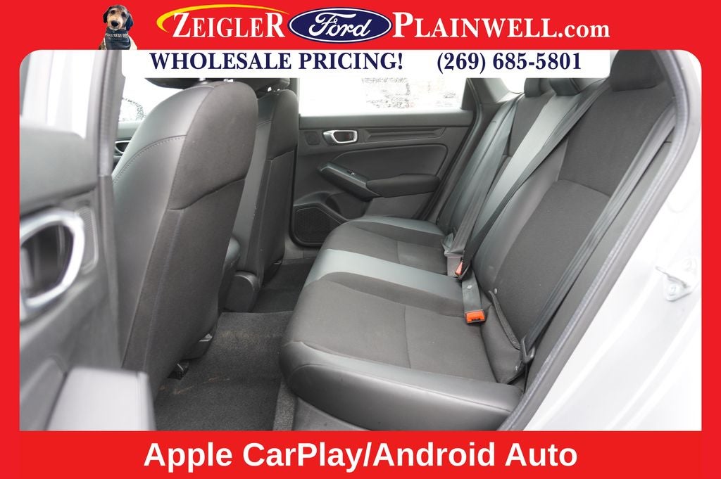 Inside, the Civic Sport's cabin is thoughtfully designed, with premium cloth/leatherette seating surfaces, a leather-wrapped steering wheel, and a host of advanced technology features. The 180-watt audio system, complete with Apple CarPlay and Android Auto compatibility, ensures you'll enjoy your favorite music and media on the go.
