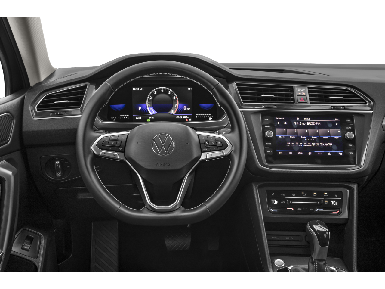 The Tiguan's spacious and well-equipped interior is designed with your comfort and convenience in mind. Enjoy the luxurious Perforated V-Tex Leatherette Seating Surfaces, Heated Front Seats, and the intuitive MIB3 Composition Media infotainment system with SiriusXM radio. The Power Liftgate and Exterior Parking Camera Rear further enhance the Tiguan's utility, making loading and unloading cargo a breeze.